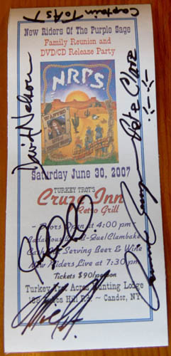 The Turkey Trot event was billed as their “Family Reunion” show –- and the official release party for the Turkey Trot DVD/CD from the New Riders’ epic shows there on July 29 & 30, 2006. I got my handbill signed by some of the band members & crew & the venue host.